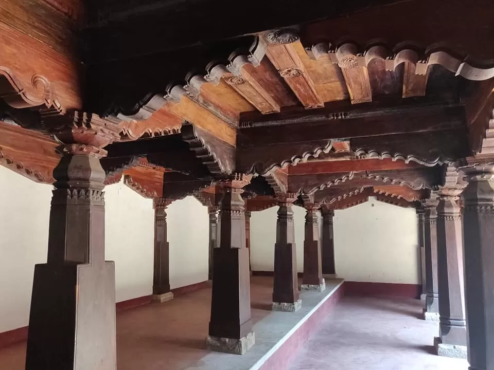 The walls are built of clay and country tiles cover the roof-top while there are sculptures on doors, windowsills, pillars, and the ceiling. The only addition of a modern floor was done in the front portion of the palace during the reign of Koosammadevi Tolaharti in 1858. The palace has seven spacious blocks including a worship center called Jain Basadi for Parshwanat.